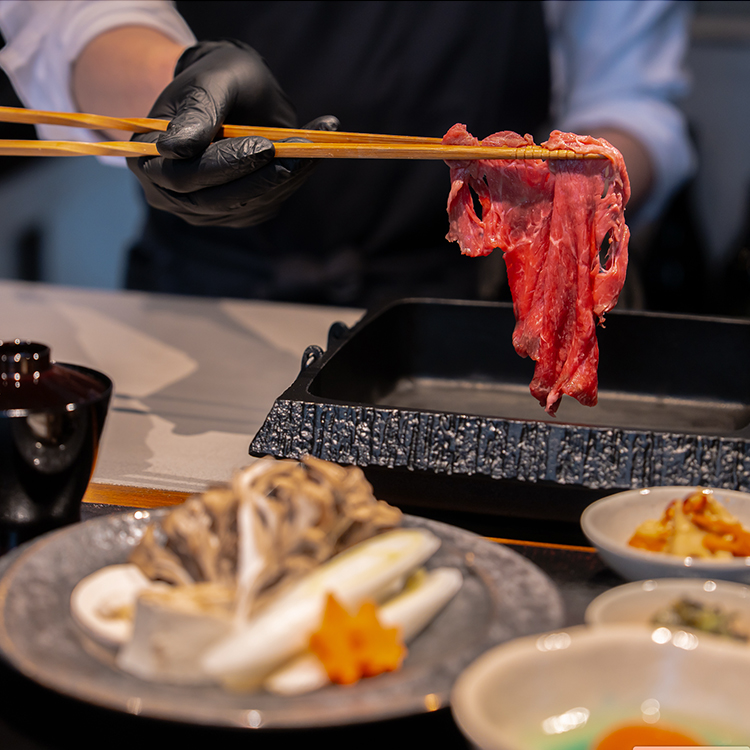 広島牛や地元食材を使用し、目の前で仕上げるすき焼きを通して、ゆっくりとした食事の時間をお楽しみいただけます。